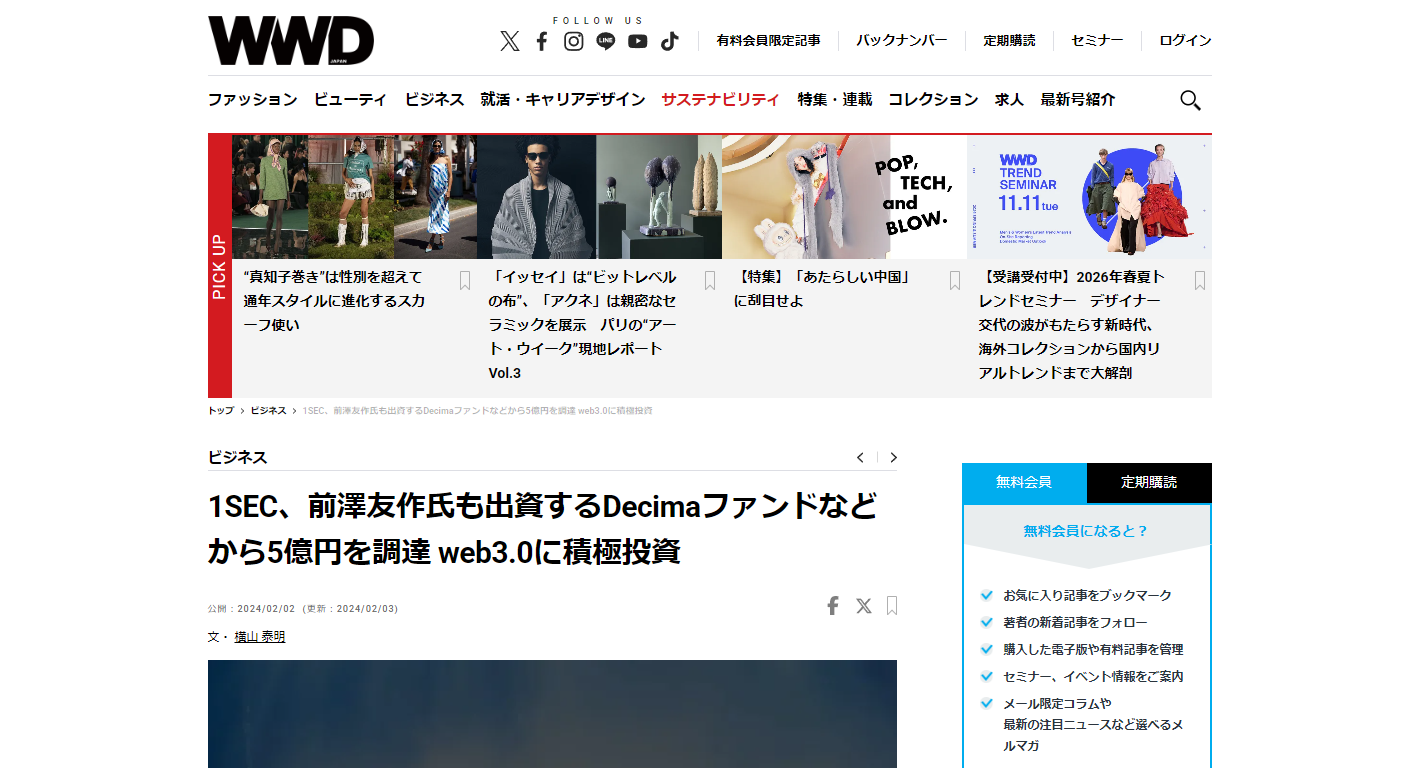 1SEC、前澤友作氏も出資するDecimaファンドなどから5億円を調達 web3.0に積極投資