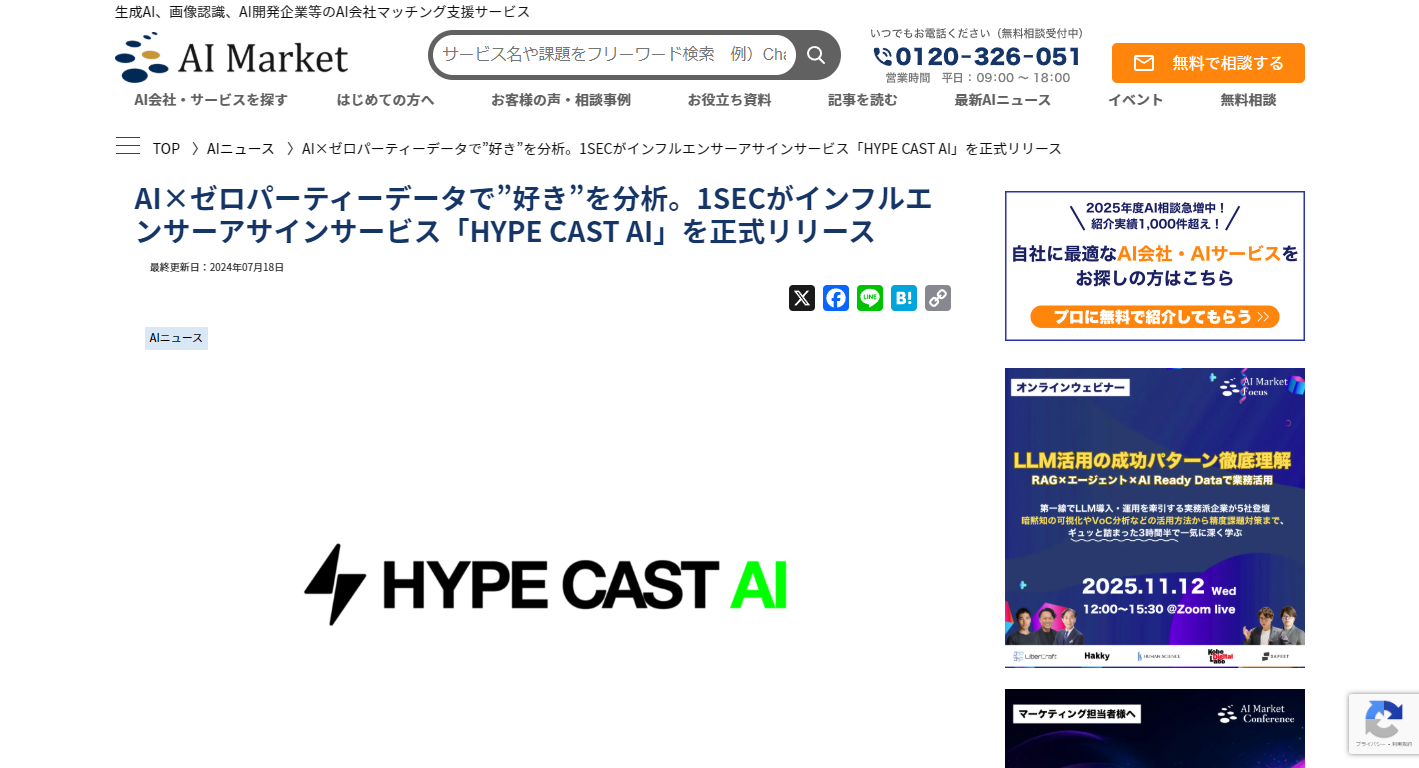 AI×ゼロパーティーデータで”好き”を分析。1SECがインフルエンサーアサインサービス「HYPE CAST AI」を正式リリース