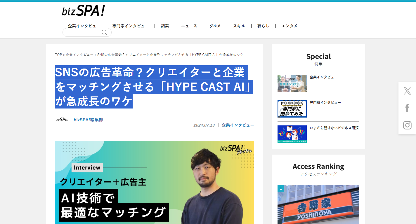 SNSの広告革命?クリエイターと企業をマッチングさせる「HYPE CAST AI」が急成長のワケ